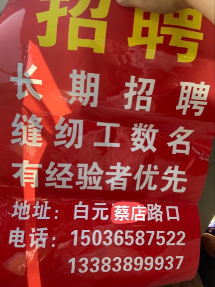 招聘职位:缝纫工